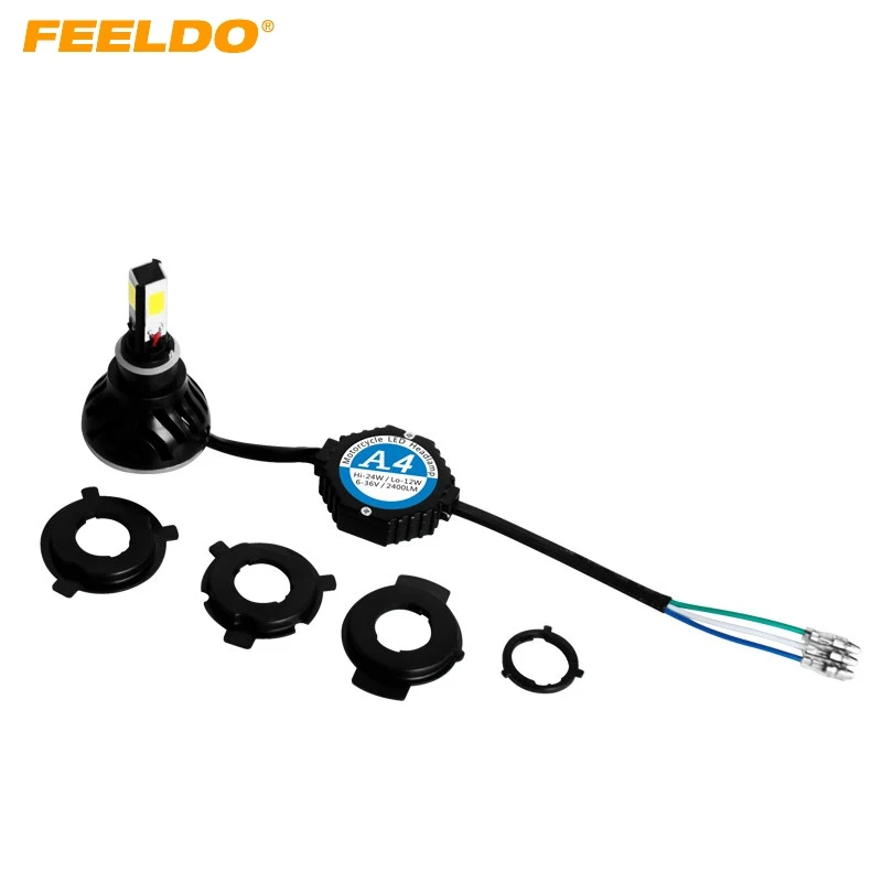 Review FEELDO H6M/H4/P15D25-3/S2(BA20D) 4in1 Motorcycle 2400LM LED 24W 6000K Hi/Lo Bulb Light Headlight KI