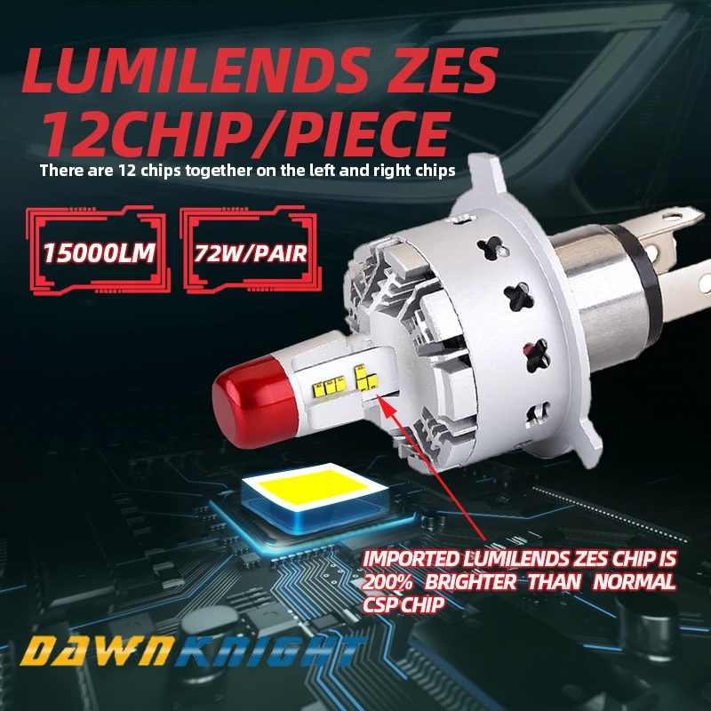 HOT Sale No Wire Harness H4 Led Headlight Lumilends Zes Chip H4 Led Bulb In Car Headlight 15000LM 72W Direct
