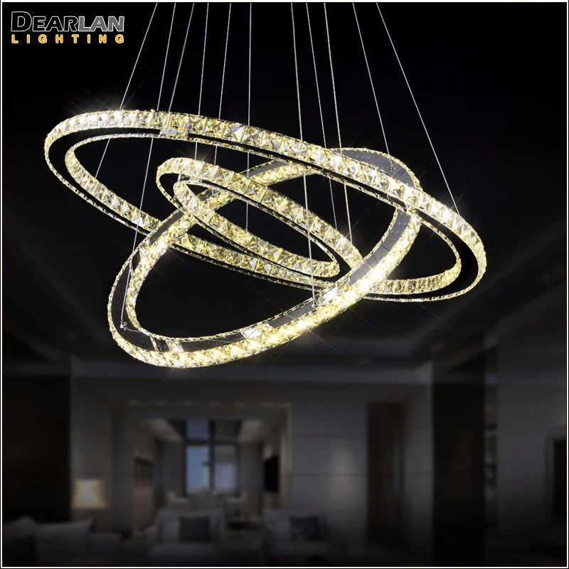 Review Modern 3 Rings LED Pendant Light With Remote Control Stainless Steel Circle Crystal Hanging Lamp Li